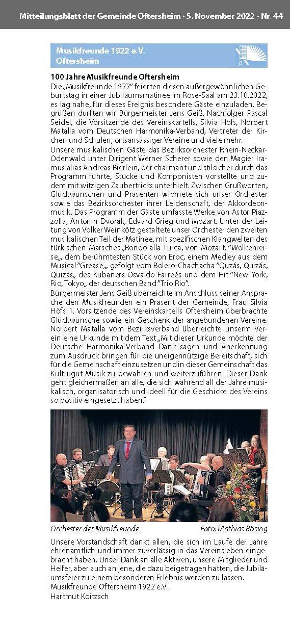 100 jähriges Jubiläum in 2022 - Matinee im Rose-Saal